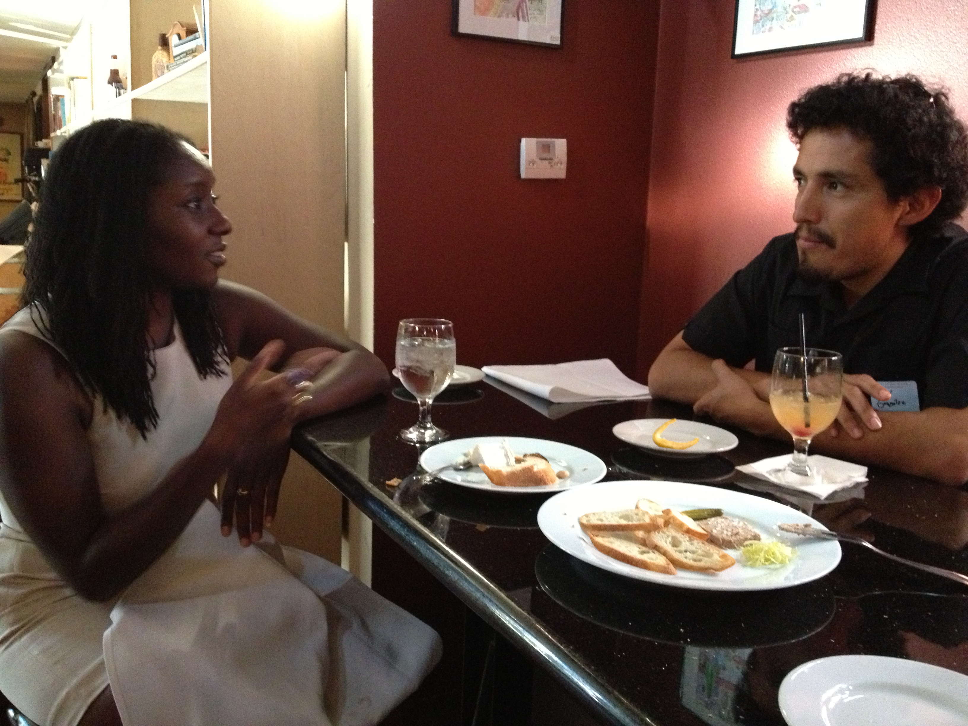 Malaika Singleton and Jose Gonzalez learn about each other’s careers at the CapSciComm meetup in August.