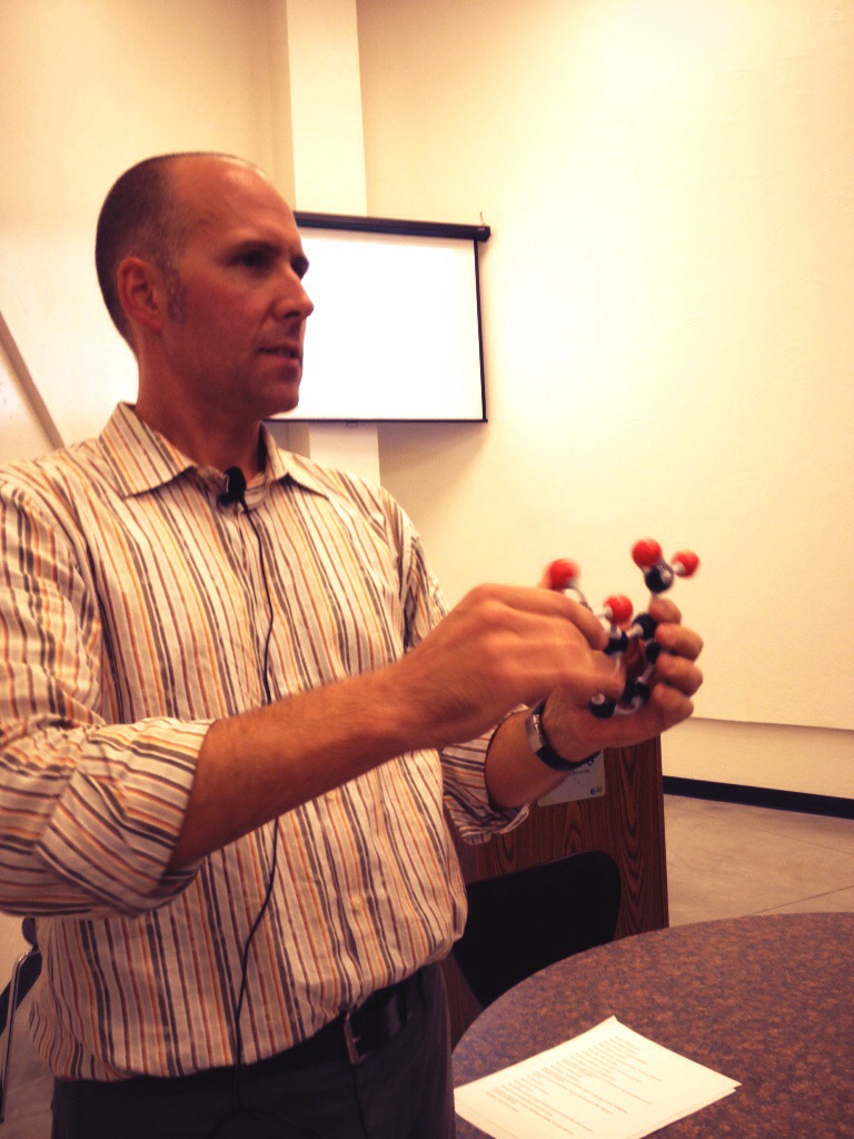 “So what is organic chemistry? Can anyone take a guess?” asked Dr. Jared Shaw, the UC Davis chemistry professor who served as the series’ inaugural speaker. “Well, I’ll tell you this… it’s not extra-expensive chemistry you can only buy at Whole Foods.”