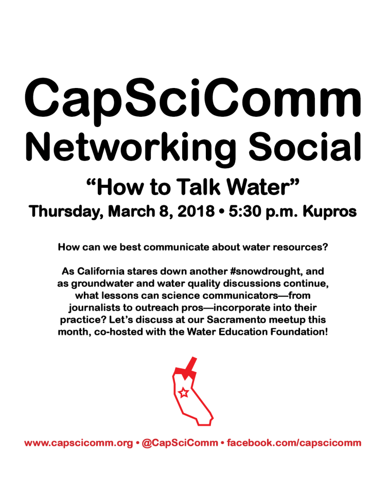 California. Water. The two are intertwined — and communicating their complex relationship is the theme of our next CapSciComm Networking Social!