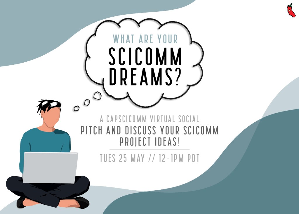 We will be hosting a networking social on Tuesday, May 25 from 12-1pm PDT for you to pitch your scicomm dreams to other science communicators and get feedback and advice. Maybe you’ll might someone who can help you bring your dreams to reality!
