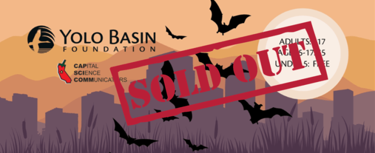 The evening begins with a presentation on bat natural history including the chance to see live ambassador bats up close, then the group will carpool out to the Yolo Bypass Wildlife Area to get in position and watch the “flyout” of the largest urban colony of Mexican free-tailed bats in California as they emerge in long ribbons to hunt for insects. The experience takes about two and a half hours altogether but space is limited, so be sure to grab your ticket(s) soon!